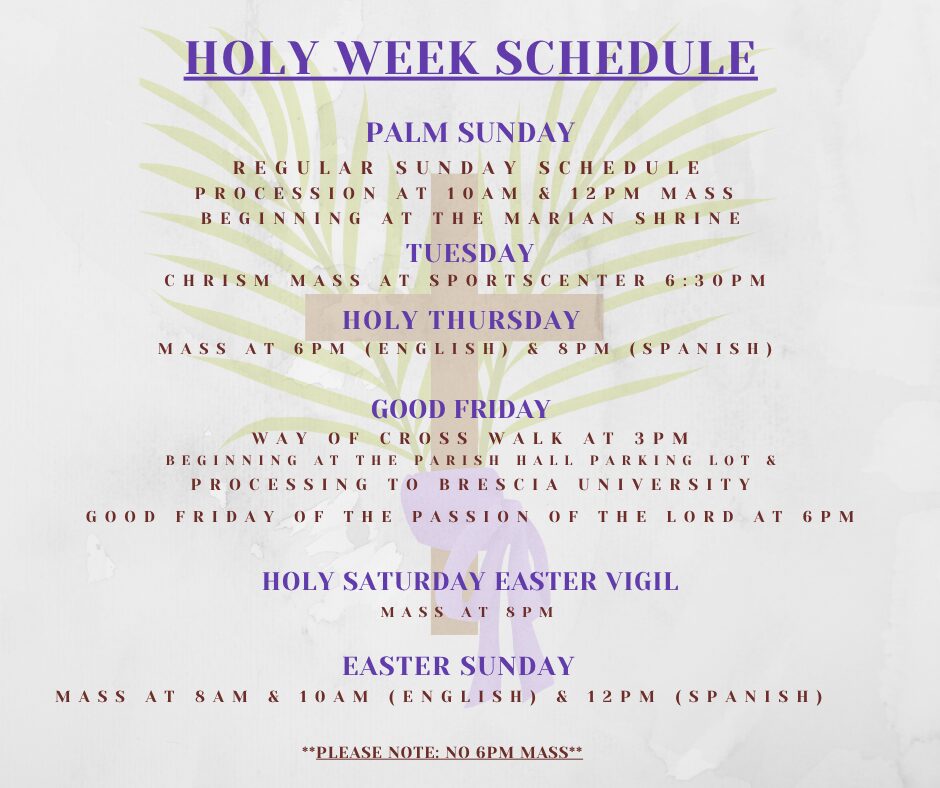Holy Week Schedule Mar 27, 2026 Share: Prev Next You Might Also Like 13 Apr 2026 Divine Mercy Sunday 5 Apr 2026 30 Mar 2026 Palm Sunday